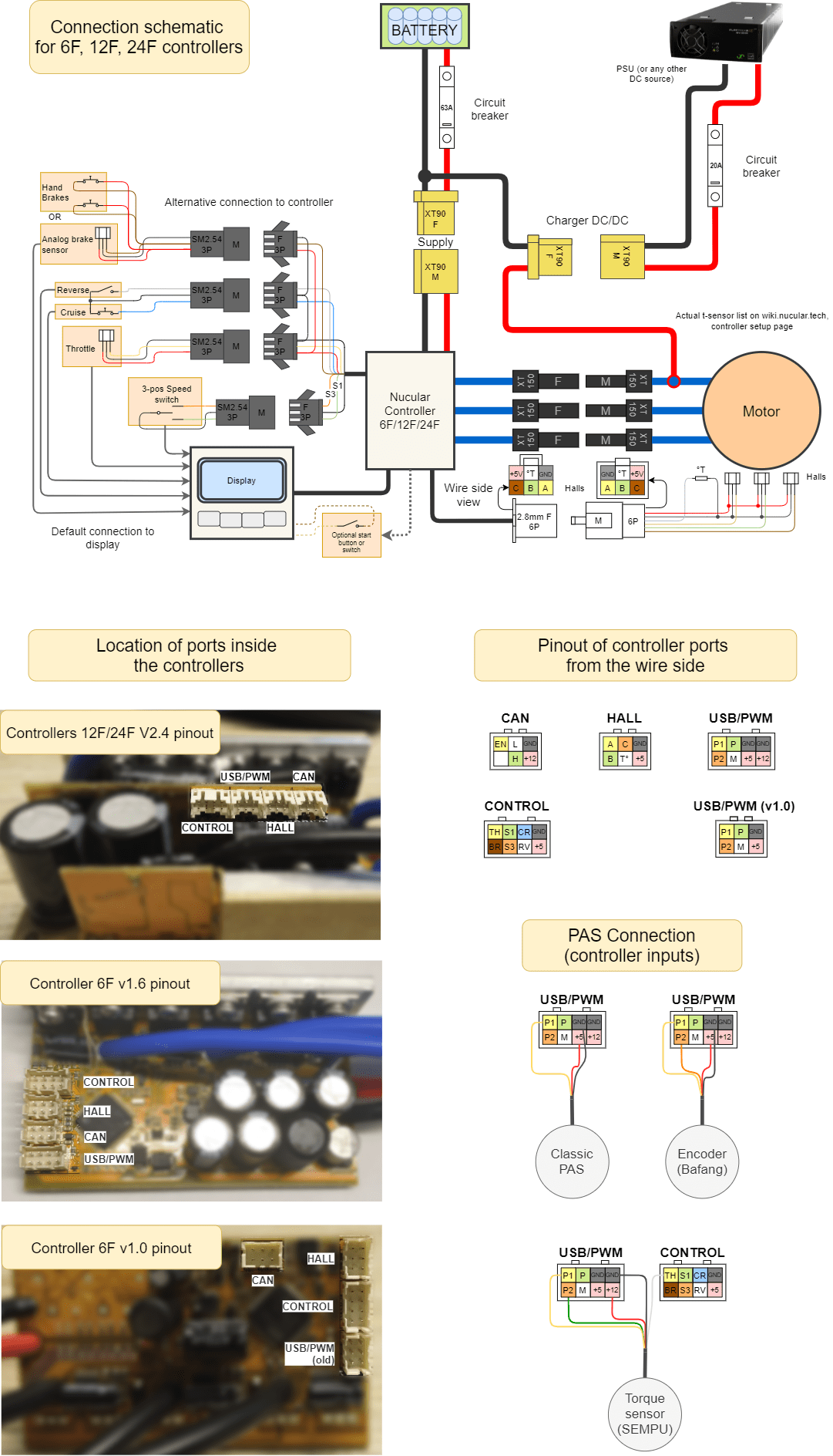 - Controller-side inputs for connection throttle, brakes levers directly to the Controller.