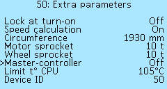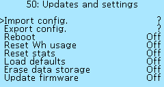 Reset Wh usage — resets the accumulated number of Watt-Hours in the controller. This indicator is displayed in the statistics of the On-board computer, see section Statistics.
