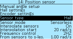 Before auto-setup the angles, we recommend specifying the correct number of motor pole pairs in menu item Controller > Auto-setup > Pole pairs. See Motor informationfor this number for the most popular motors. If your motor is not on the list, check with the manufacturer or search the Internet for information.