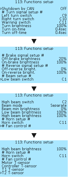Similar to connecting and setup the headlight. Also, read the description of the Turn signal setup menu section.