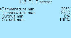 The setup menus for all temperature sensors are the same. Below is a description of the menu using the example of a T1 T-sensor.
