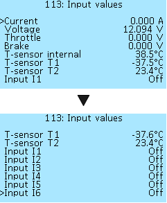 In this section of the menu you can see the values of the indicators at each input of the uLight board. This menu is similar to the Debug information item in the Controller menu.