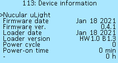 The uLight setup menu is located under Settings > Devices > Nucular uLight. Below you can find a detailed description of the menu items.