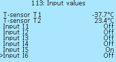 T1 Threshold (port I7) — I7 is a virtual port intended to function setup (see Function setup). Values from 0°C to 250°C, in 1°C increments.