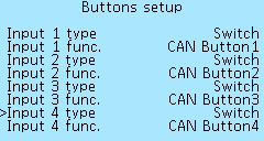 Next, select which input the High beam button on the switch is connected to, for example, to Input 3. Go to the Input 3 func menu section. and configure the function of the CAN button 3. Next, select the type of button Switch in the menu item Input 3 type.