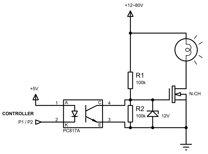If you are using something more powerful, isolated scheme recommended, you can also buy this kind of boards on aliexpress (Mosfet Optocoupler Isolation Driver):